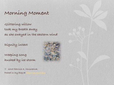 Thought I would share a poem that I wrote for my blog last year, as well.